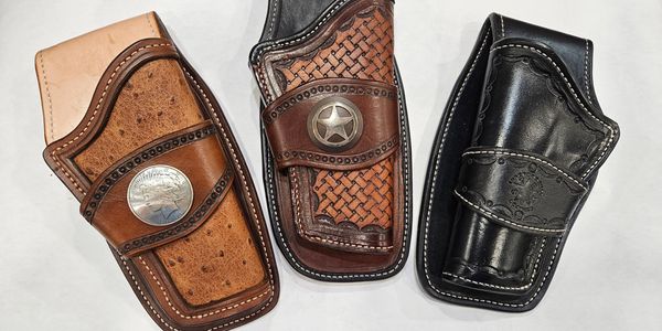 Handcrafted gun holsters, belts, knife sheaths and more.